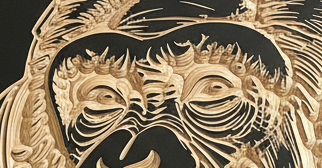 Gravure sur bois bouleau noir mat représentant la puissance de la jungle. Taille Standard.