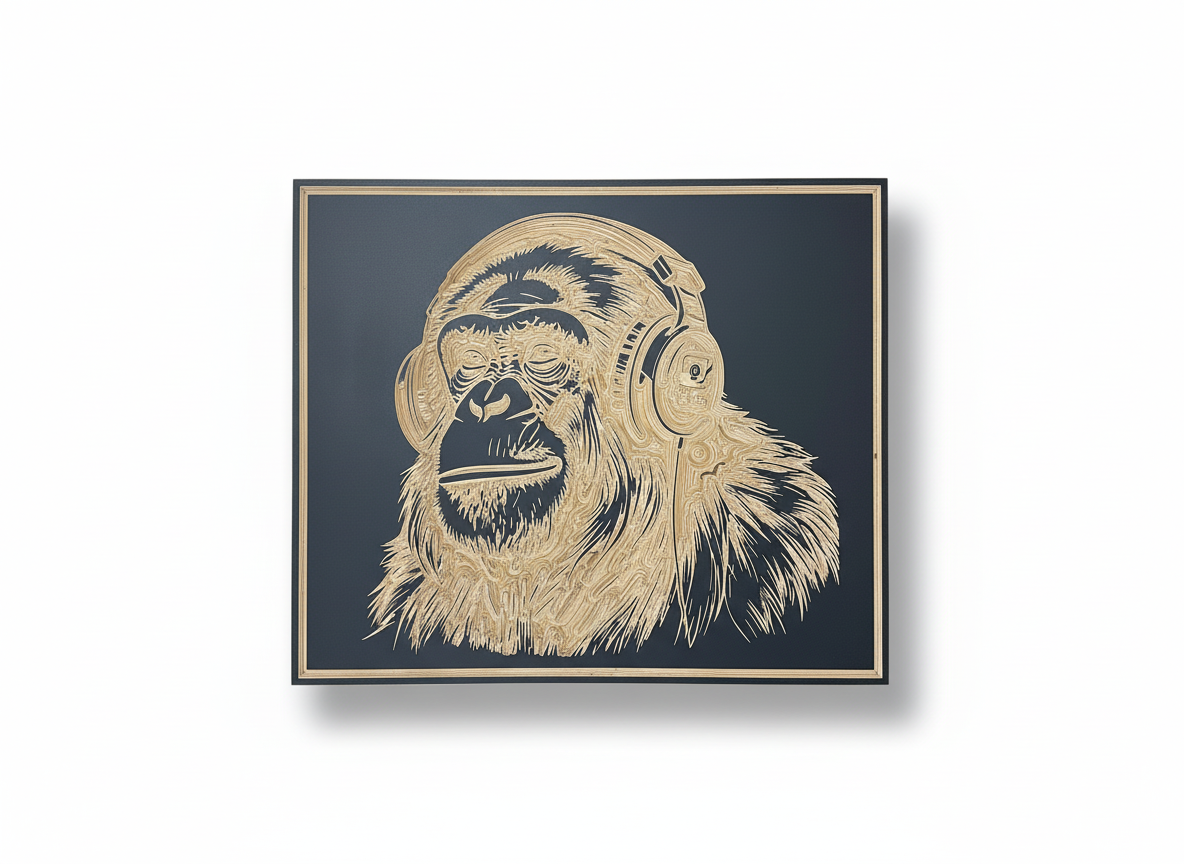 Tableau JUNGLE – Gorille en gravure sur bois, fond noir – Standard