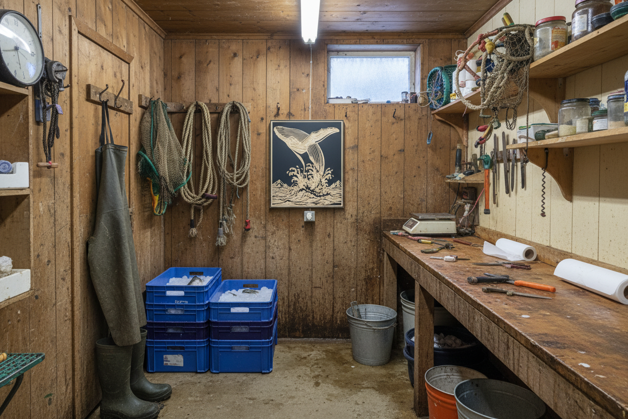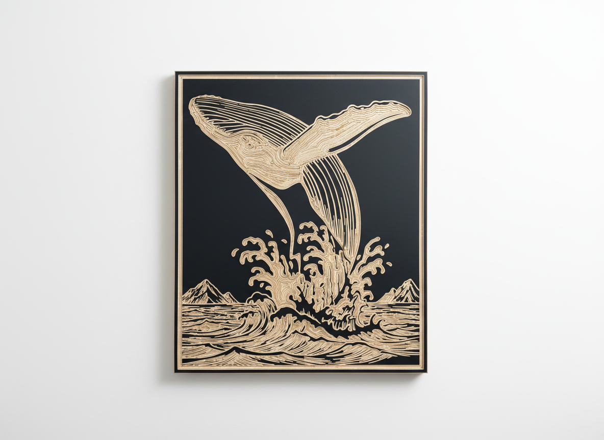 Tableau BALEINE – Gravure sur bois, fond noir – Standard